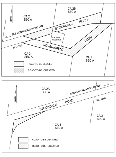 Notice is hereby given that pursuant to the provisions of Section 206 including clause 2 of Schedule 10 and 207A of the Local Government Act 1989, the Wellington Shire Council, not less than four (4) weeks from the date of publication of this notice, proposes to undertake a road exchange by deviating a Government Road north of CA1 Sec A and CA 3 Sec A Parish of Bow- Worrung shown hatched below over parts of CA2 Sec A, CA2B Sec A and CA4 Sec A, Parish of Bow-Worrung shown cross hatched below.